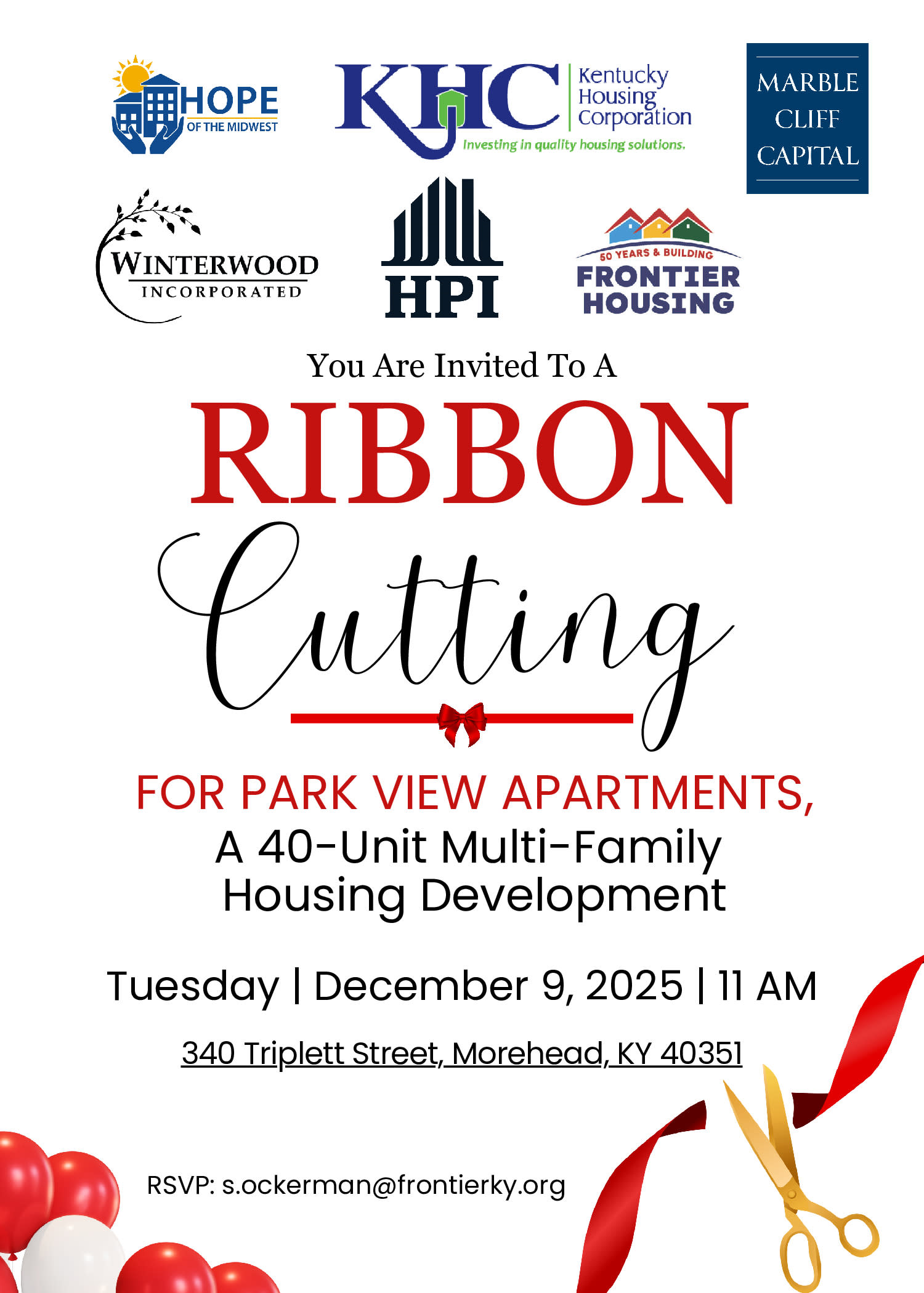 You are invited to a Ribbon Cutting for Park View Apartments, a 40-unit multi-family housing development.