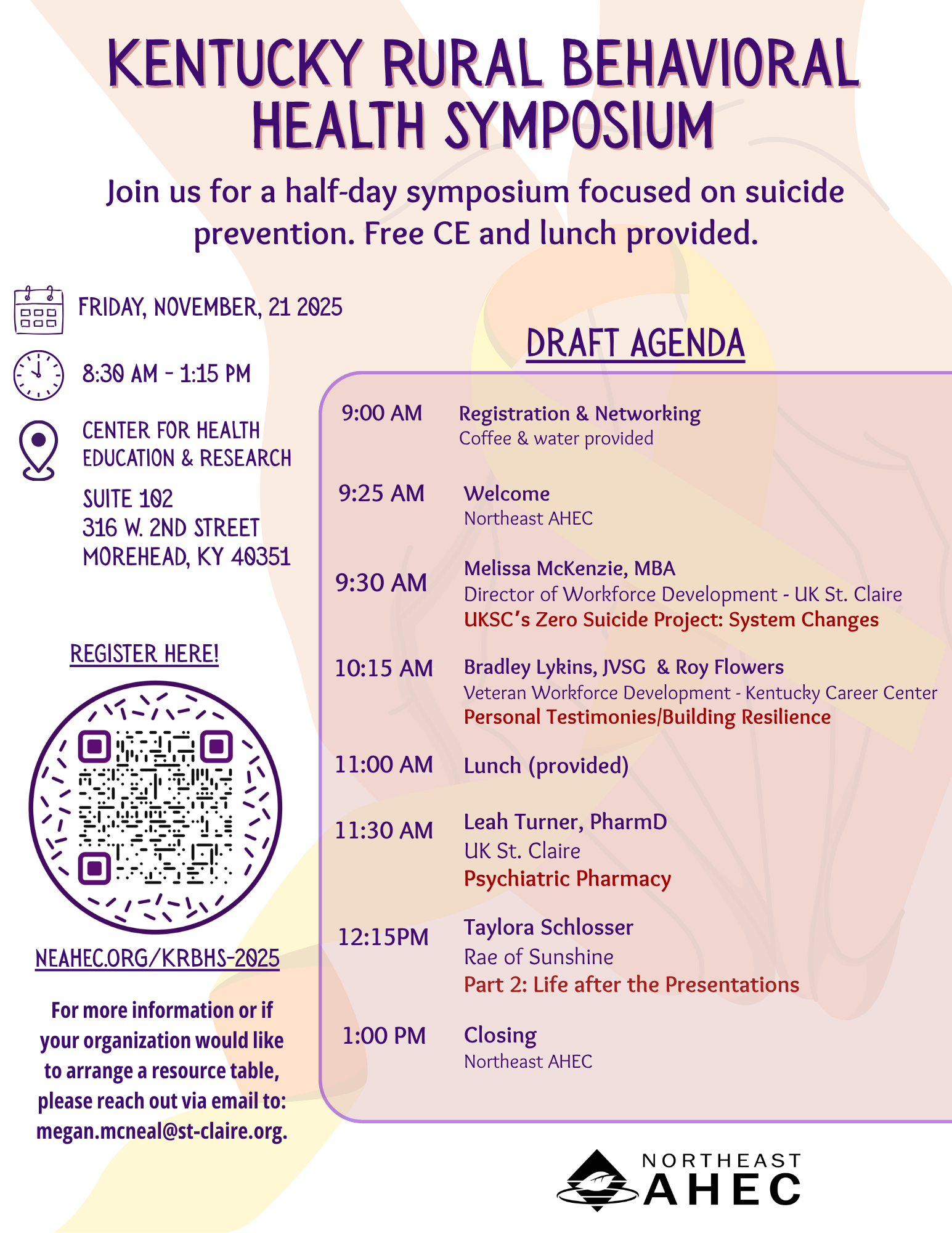 Join us for a half-day symposium focused on suicide prevention. Free CE and lunch provided.Images
