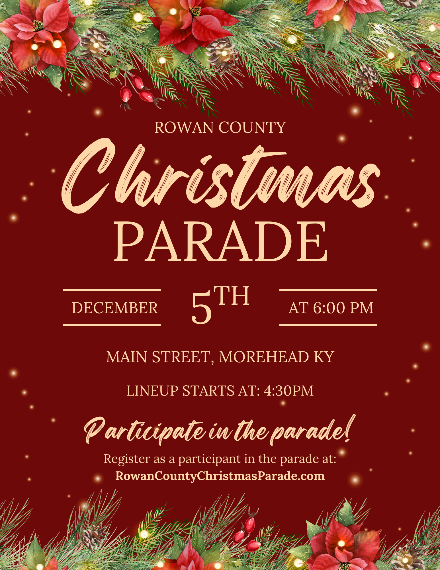 The Rowan County Christmas Parade, a beloved tradition for over ten years, returns on December 5th, 2025, at 6:00 PM. Join us in celebrating the joy of Christmas and the birth of Jesus as our community comes together to share in the festive spirit. This annual event is more than just a parade; it's a joyful gathering that reflects our unity and shared values. Don't miss this magical evening filled with lights, music, and holiday cheer! If you are interested in participating in the Parade, visit our website for more information and to fill out the parade entry form: RowanCountyChristmasParade.com