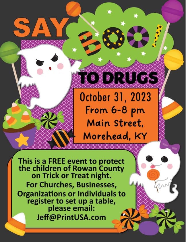 Say Boo to Drugs: This is a free event to protect the children of Rowan County on Trick or Treat night. For Churches, Businesses, Organizations or Individuals to register to set up a table please email Jeff Fannin at Jeff@PrintUSA.comImages